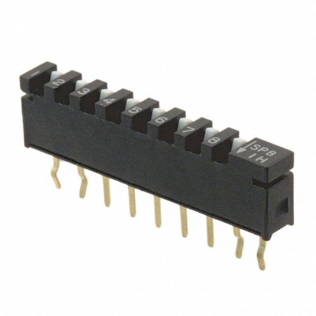 Yksityiskohtainen kuvaus Dip Switch SPST 8 Position Through Hole Slide (Standard) Actuator 10mA 20VDC Nykyinen arvostelu 10mA