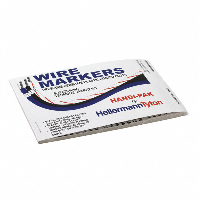 Lyijytön tila / RoHS-tila Lead free / RoHS Compliant Yksityiskohtainen kuvaus Wire Marker, Book (Perforated) 0.25" W x 1.63" L (6.4mm x 41.3mm) White Vinyl Cloth
