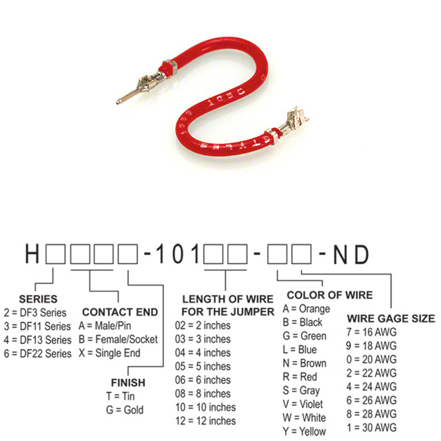 Lyijytön tila / RoHS-tila Lead free / RoHS Compliant Yksityiskohtainen kuvaus Red 24 AWG Jumper Lead Pin to Socket Tin 5.00" (127.00mm)