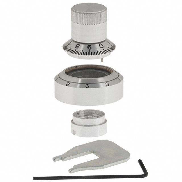 Lyijytön tila / RoHS-tila Lead free / RoHS Compliant Yksityiskohtainen kuvaus 0.250" (6.35mm) Shaft Size 10 Turn Clear Anodize Scale Dial