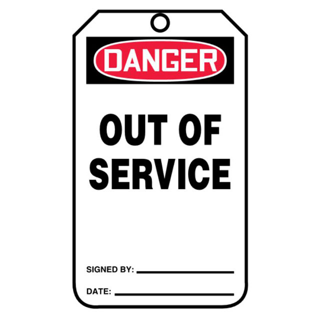 Kuvaus: SFTYTAG,DGR OUT OF SERVICE, BK B